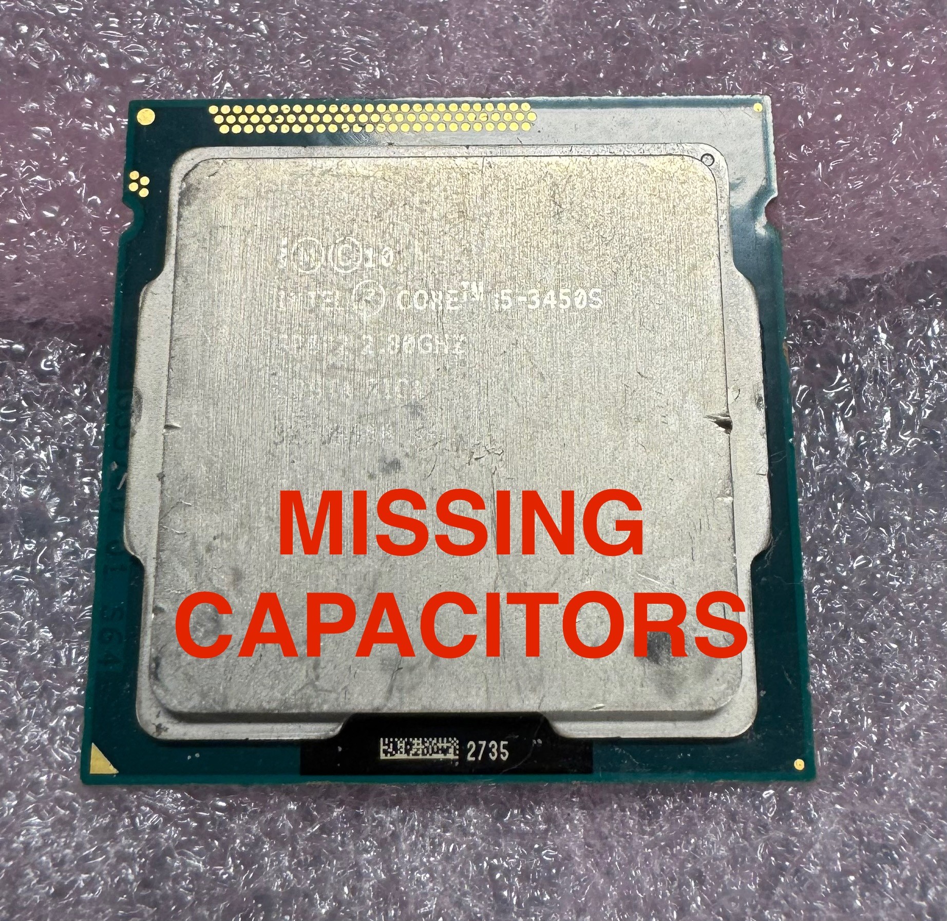 Used – CPUs may have missing capacitors, scratches on the IHS/LGA, bends, divots, and other physical imperfections. Condition varies by unit. Many are missing a few capacitors, while others may be missing more.