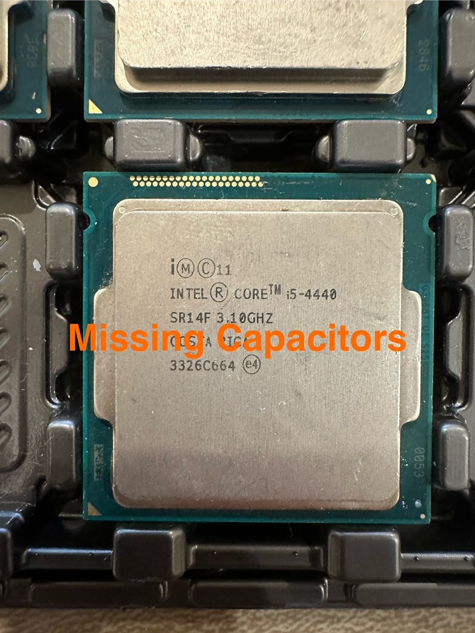 Used – CPUs may have missing capacitors, scratches on the IHS/LGA, small bends, divots, or other cosmetic imperfections. Condition varies per unit. Most have only minor missing capacitors; a few may have more.