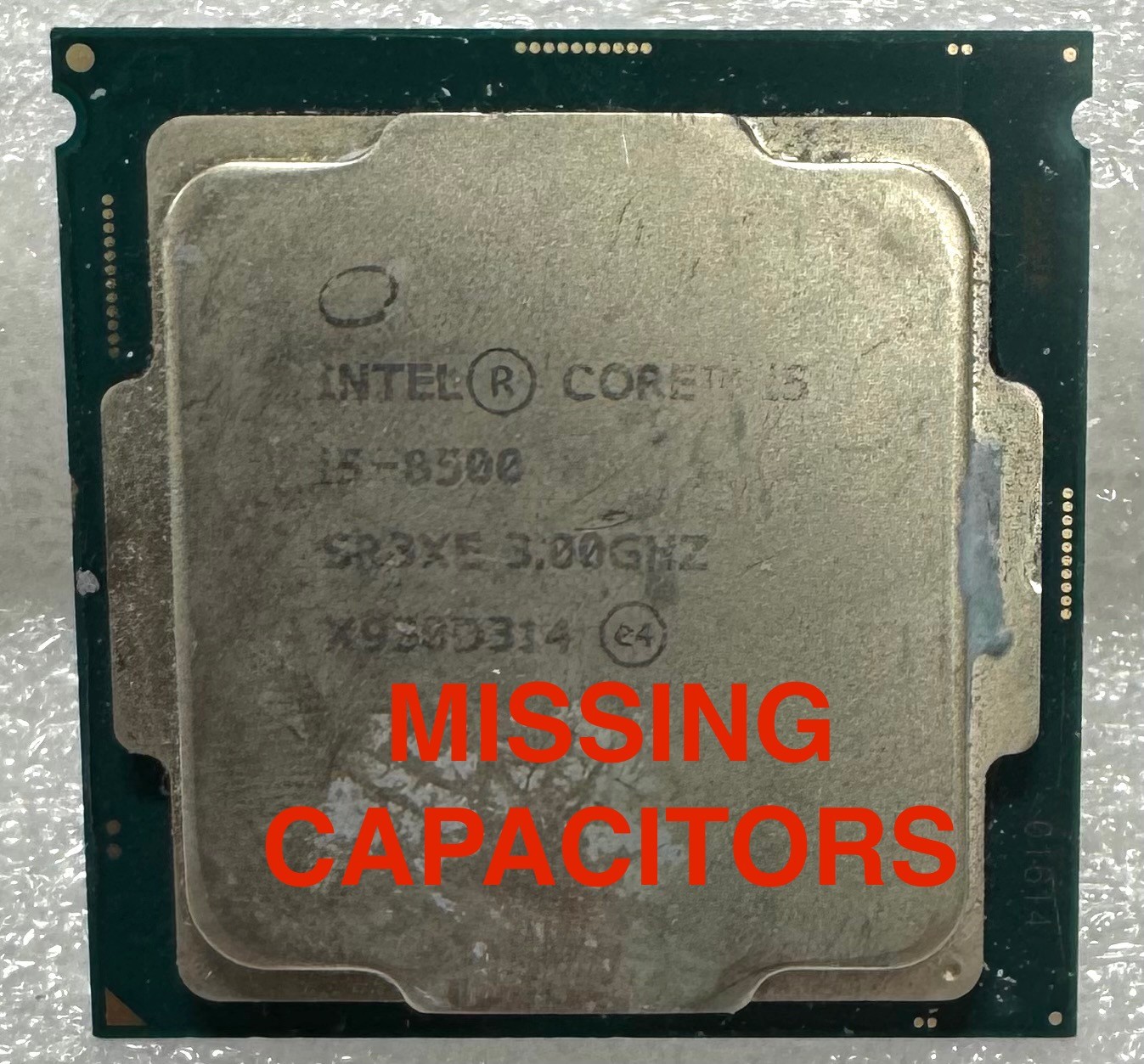 Used – CPUs may have missing capacitors, scratches on the IHS/LGA, bends, divots, and other physical imperfections. Condition varies by unit. Many are missing a few capacitors, while others may be missing more.