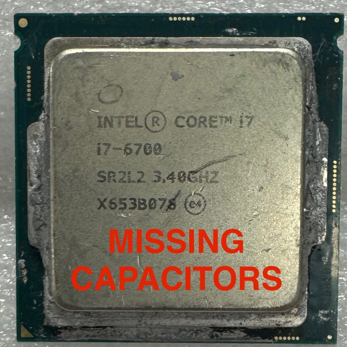Used – CPUs may have missing capacitors, scratches on the IHS/LGA, bends, divots, and other physical imperfections. Condition varies by unit. Many are missing a few capacitors, while others may be missing more.
