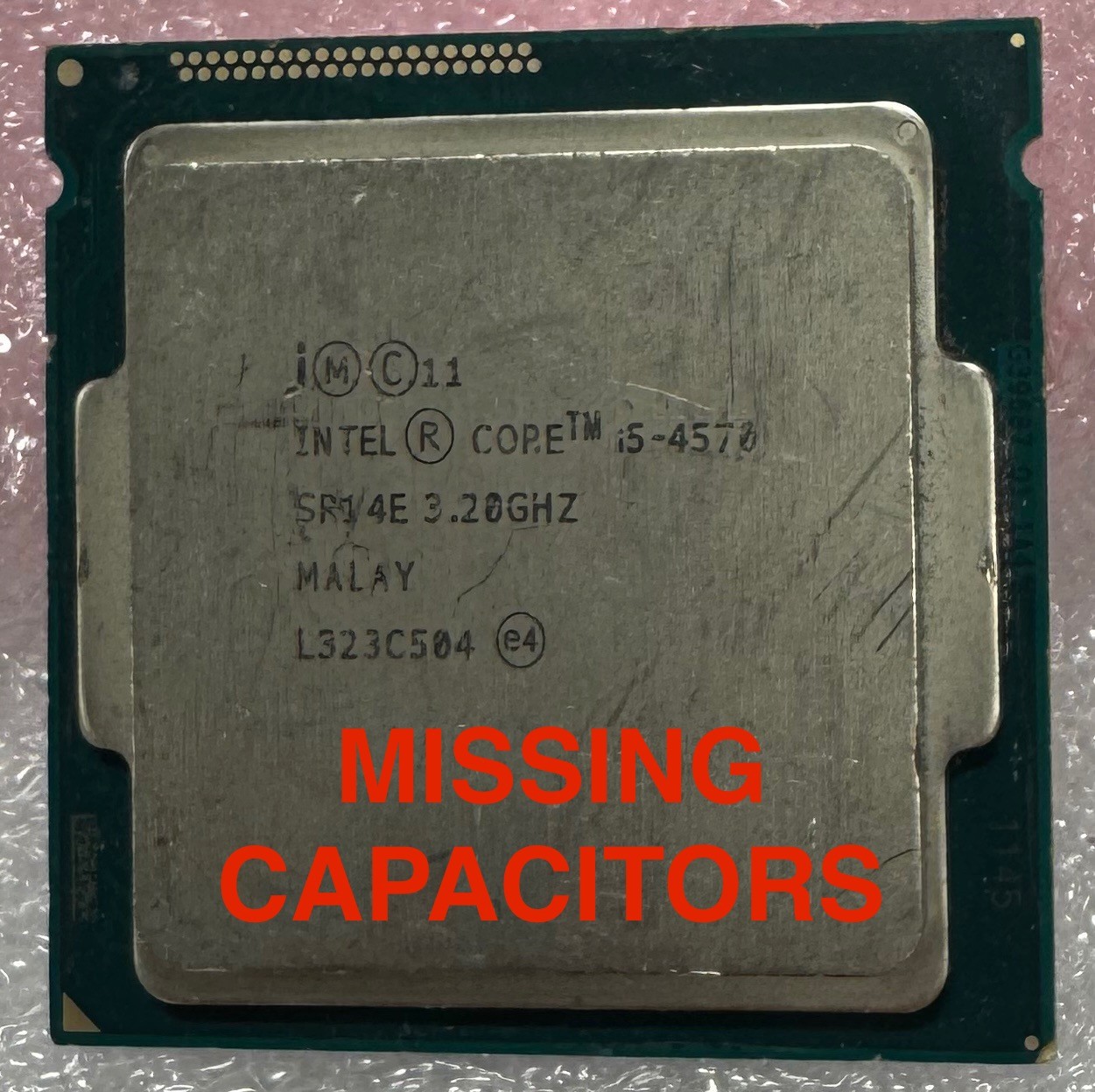 Used – CPUs may have missing capacitors, scratches on the IHS/LGA, bends, divots, and other physical imperfections. Condition varies by unit. Many are missing a few capacitors, while others may be missing more.
